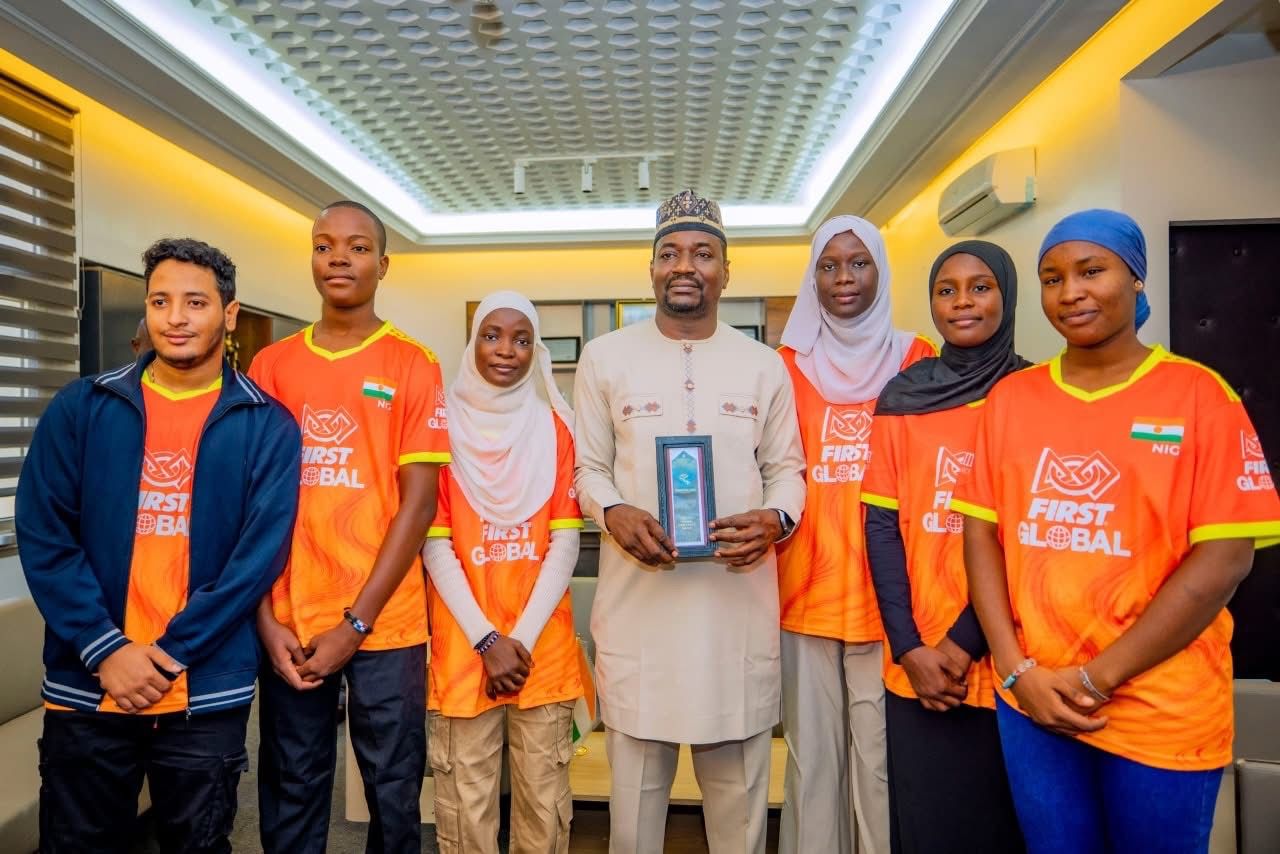 Le Ministre de la Communication et des Nouvelles Technologies de l’Information, Adji Ali Salatou, a reçu à son cabinet la Team Niger Robotics, qui a représenté le Niger au Championnat international de robotique First Global Challenge 2025. L’équipe, composée de quatre jeunes étudiants âgés de 14 à 18 ans, dont une fille, et de leur mentor, a participé à la compétition autour du thème « Eco-Equilibrium ». Les jeunes nigériens ont remporté deux distinctions majeures : le Prix « Social Media Challenge » et le Prix « Best Mentor », attribué à leur encadrant Daouda Hamadou. Lors de la rencontre, le Ministre a salué les efforts de la jeunesse nigérienne et souligné l’importance de soutenir les initiatives technologiques locales pour développer le capital humain du pays. Il a rappelé que ces projets contribuent à la refondation nationale et mettent en lumière le potentiel innovant des jeunes talents nigériens. Cette audience illustre l’engagement du gouvernement à promouvoir les compétences scientifiques et technologiques auprès de la jeunesse.